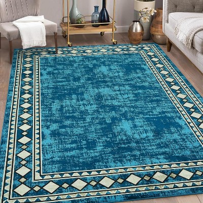 8*10FT Modern Washable Low-Pile Area Rug: Non-Slip Farmhouse Floral Carpet for Living Room, Bedroom, or Nursery-Green