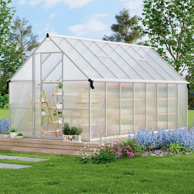 8*14FT Aluminum-Framed Polycarbonate Greenhouse, with Quick Setup Structure and Roof Vent, Enhanced Aluminum Greenhouses Kit for Outdoors,Silver
