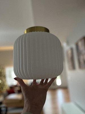 [This review was collected as part of a promotion.] I have a track home with a lot of basic “builder grade” fixtures and i try to upgrade them whenever I get the chance. I have to say I love the look of this semi-flush mount. The ridged opaque glass and golden accents give it a cozy, yet modern feel. This will be perfect in a small hallway or over the toilet. I haven’t decided yet. But I know it will be a nice upgrade to the existing dome lights.