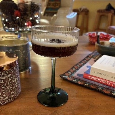 Versatile, good size, and cool design! I love the clear ribbing with the forest green stem and it makes it feel Christmasy and wintery. Makes your cocktail look festive.