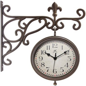 8" Beauregard Wall Clock Brown - Infinity Instruments: Dual-Faced, Indoor/Outdoor, Thermometer, Modern Style