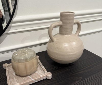 Add a soft, pastel tone to your neutral decor with this Marble Catchall Tray from Threshold™ designed with Studio McGee. This decorative tray is designed in an off-white hue and features outward corners in a round shape for a distinct look. Designed in a square shape, you can place this marble tray on the console table to display small planters or use it to organize keys, trinkets and other items.