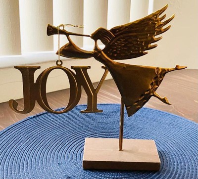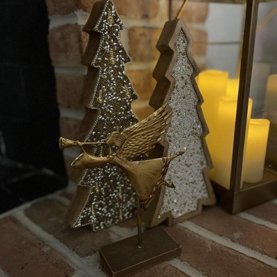 8" Metal Angel with Horn Christmas Figurine - Wondershop™ Gold: Indoor Tabletop Holiday Decor