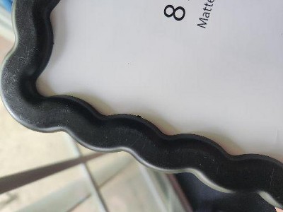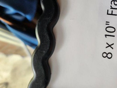 A: The frame features a stylish wavy rectangular design, adding a modern touch to any decor.