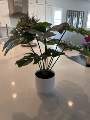 Amp up your home decor with this Monstera Artificial Plant from Room Essentials™. This natural-looking faux monstera plant brings a lively vibe to your home decor, and it comes potted inside a white melamine container with faux soil for easy display on any flat surface. Plus, it stays beautiful at all times without the hassle and worry of maintenance.