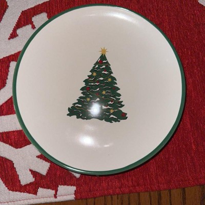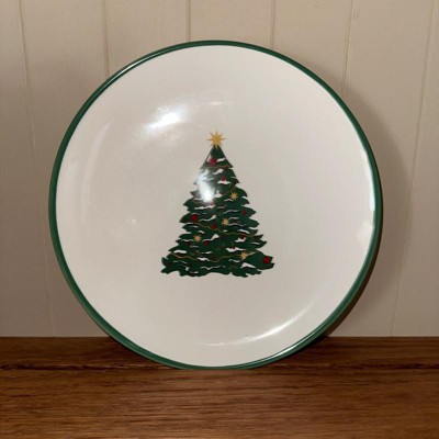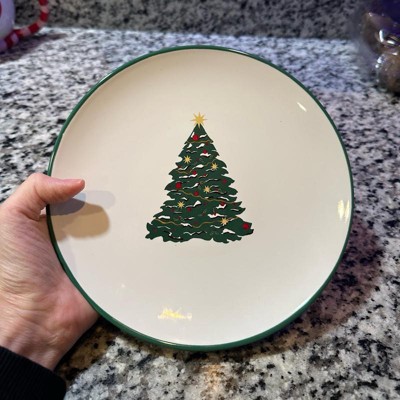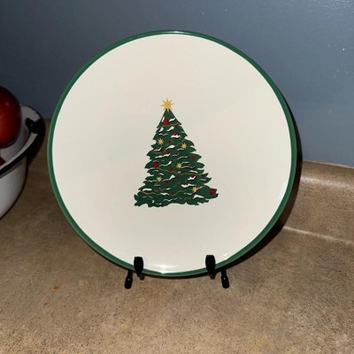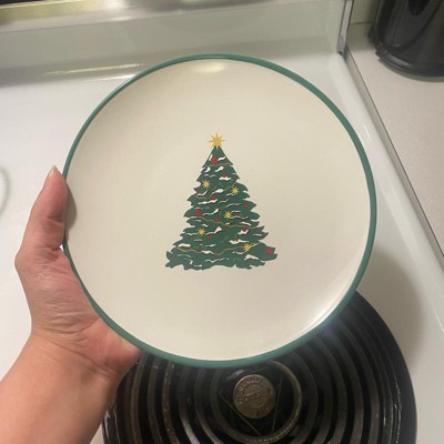 [This review was collected as part of a promotion.] I bought this to use as a candle holder but it’s so cute I think I will keep it on a stand to show it off. The plate is stoneware and microwave And dishwasher safe. The plate is trimmed in green and has a coordinating tree in the center. The tree is green with red, green and yellow accents decorating it. Love this