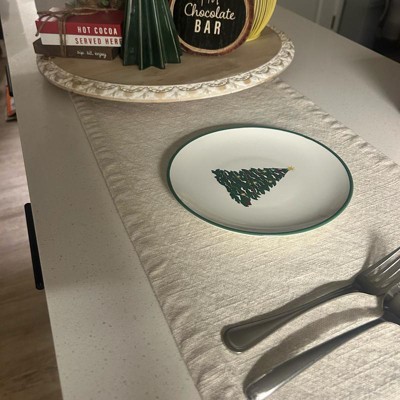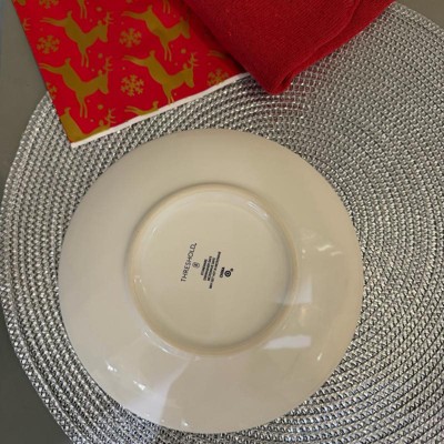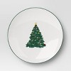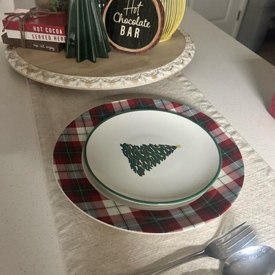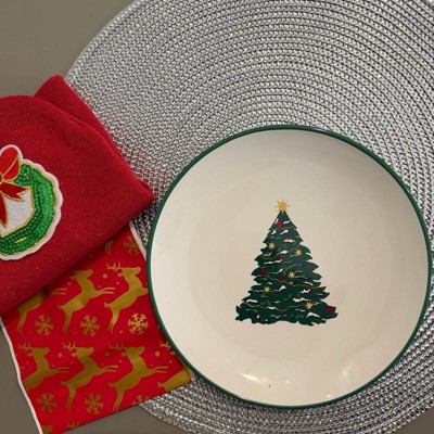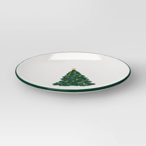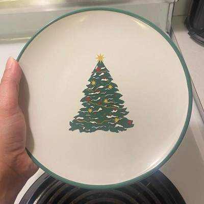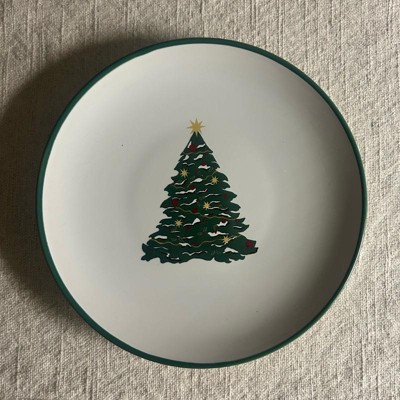 Add an elegant touch to your holiday table settings with this Layering Salad Plate from Threshold™. Made of stoneware, this round salad plate features green Christmas tree print in the center along with a green rim for festive charm, making it ideal for special occasions and everyday use. Plus, this 8.5-wide plate is also dishwasher and microwave safe for easy cleaning and reheating.