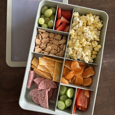 This snack box is so close to being perfect, but unfortunately misses the mark. The dividers do not meet the lid, allowing food to move around and mix. Your watermelon juice soaks your ritz, and your chocolate chips get mixed in with your kiwi slices. So close to being perfect.