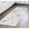 Add some artistry to your room with this 8-foot cream and gray abstract power loom runner rug. This runner shaped rug features a abstract design that will add a functional and decorative accent to your space. This smaller sized rug is just what you need for your walkway, or in front of door, cabinet, refrigerator, or chair. 30-inch h x 96-inch w x 0.4-inch d