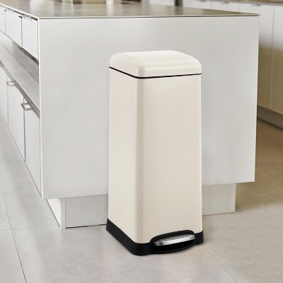 Slim Stainless Steel Step Trash Can - Rectangular Kitchen Garbage Bin with Soft-Close Lid, Anti-Fingerprint, Space-Saving for Small Spaces