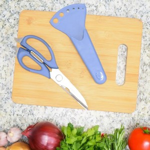 Heavy-Duty Blades: Features sharp, serrated stainless steel blades that easily cut through meat and bone.Multi-Function Tool: Includes scissors, bone cutter, fish scaler, shell opener, peeler/stripper, nutcracker, bottle opener, and herb stripper.Easy Storage: Comes with a blade cover for safe and convenient drawer storage.Hassle-Free Cleaning: Blades separate for easy and thorough cleaning.