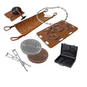 - This set includes a Time Keeper Bell with Hammer, a Briefcase, and a Stretcher for those high-stakes matches. Additionally, it comes with 2 Sewer Grates, a Barbed Wire Piece, a Barbed Wire Board, and a Pair of Crutches, providing all the tools needed for hardcore battles.