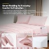 - Fitted Sheet with Secure Fit & Side Pocket – Fully elasticized fitted sheet features a wide side pocket and fits deep pockets mattresses up to 16 inches, keeping it snug and in place.