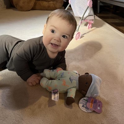 Add this fun dinosaur-inspired Soft Little Baby Doll from Gigglescape™ to your kid's toy collection and let their imagination soar. Made of polyester-recycled polyester blend fabric, this baby doll is dressed in pajamas with an allover print of dinosaurs and a hat for a cute look. Suitable for ages 1 and above, this cute doll is great for countless hugs and playtime adventures.