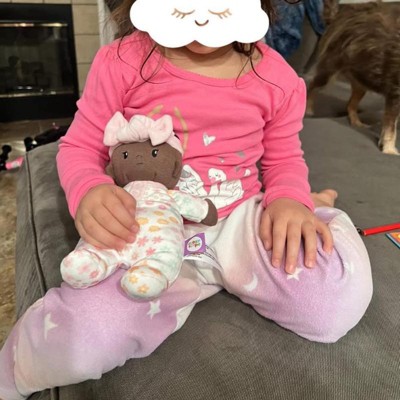 [This review was collected as part of a promotion.] This little doll was supposed to be for my 3 year old but my 9 month old baby claimed it instead, it is age appropriate for baby and toddler, it is very soft and my baby really likes it! He had a huge smile while playing with it, the purple floral pajamas are too cute, both babies enjoy playing with this cutie doll, this collection is beautiful and they look more expensive than their cost I received an incentive to write this review.