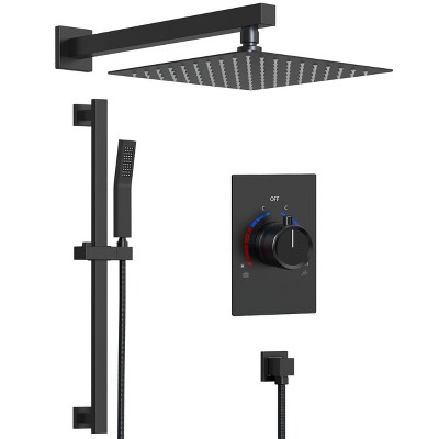 Update your shower with this Everstein 8" Tub and Shower Faucet Valve Included Set. The 8" ultra-thin overhead rainfall shower head provides extensive coverage and a soothing downpour shower experience with 360° adjustability. The shower system is equipped with water hammer prevention and an anti-scald pressure-balanced valve, offering reliable durability and easy installation. The fingerprint-resistant finish ensures a lustrous shine in damp settings, enhancing your bathroom's modern aesthetic. The 8-inch ultra-thin shower head uses air pressure boosting technology to provide high-pressure water flow while saving up to 50% of water. The set includes a tub spout that can fill up your bathtub in minutes without any splashing, providing an elegant and practical soaking experience. Update your bathroom with this Everstein 8" Tub and Shower Faucet Set.