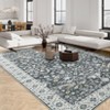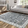 8 x 10 ft Polyester Gray Rectangular Hallway Bathroom Entryway Kitchen Office Foldable Flower Printed Washable Area Rug