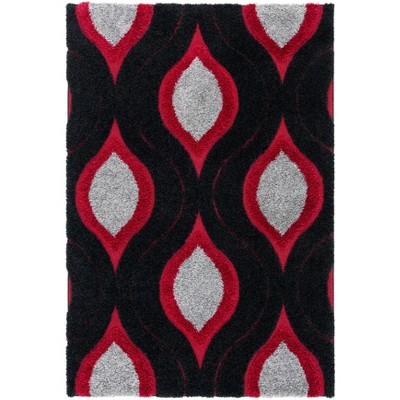 8' x 10' Indoor Modern Machine Washable Geometric Bordered Area Rugs - Soft Non Slip Floor Carpet for Home Office, Black Red