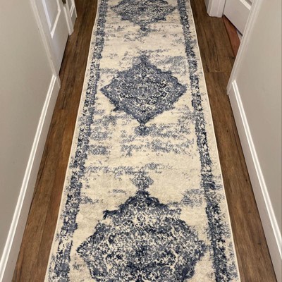 This elegant rug's ornate medallion and arches are inspired by traditional Persian rug patterns. Warm, light blue and ivory are the perfect way to update a living room, bedroom, entry or dining room. With its muted design, this versatile rug works beautifully in both traditional and modern spaces.