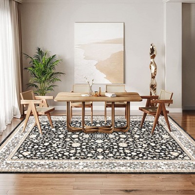8'x10' Area Rug Vintage Boho Washable Rug Farmhouse Distressed Print Rug Non Shedding Carpet for Dining Room, Brown