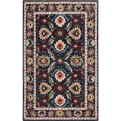 8'x10'Machine Washable Floral Area Rug,Large Soft Modern Carpet,Non Slip Low Pile Floor Mat for Living Room Bedroom Dining Room,Black