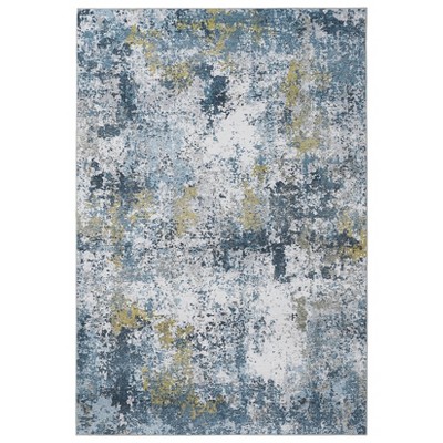8'x10' Modern Washable Area Rug for Living Room, Bordered Minimalist Home Decorative Carpet, Non Slip Soft Bedroom Rugs, Navy