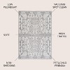 - A mingled weave of ivory and light gray fibers in the background give this rug extra dimension; the pattern is woven in medium gray