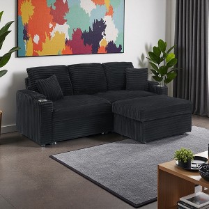 80" Corduroy Sectional Sofa with Hidden Recliner & Storage