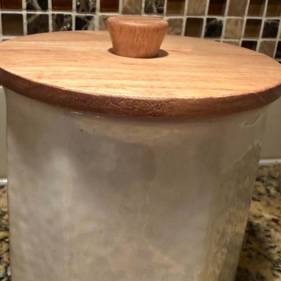 [This review was collected as part of a promotion.] This was a no brainer purchase. The ceramic container has a nice cream hue that’s been glossed. It comes with a wooden topper that has a seal close. The size is perfect for a variety of items such as sugar, flour, or seasonings you need to access quickly. I used mine for sugar to make sure I have something that’s quickly accessible when I make tea. I can’t wait to get more from this collection as it’s perfect for my kitchen. It’s a great price for the ability in my opinion. I highly recommend this!