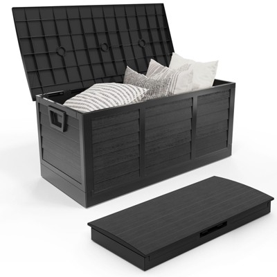 80-Gallon Waterproof Rattan Deck Box with Handles & Wheels, Durable Outdoor Storage Bin for Garden, Pool, Cushions, and Patio