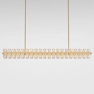 Introducing the Crystal Rectangular Chandelier Light Fixture — a stunning 72-inch modern chandelier that brings elegance and grandeur to any space. Perfectly suited for large dining rooms, living rooms, or as a kitchen island centerpiece, this chandelier features a sleek rectangular design that complements contemporary interiors. Equipped with 80 G4 bulbs, it delivers brilliant, even illumination, transforming your space with a captivating glow. Ideal for placement over tables or islands, this chandelier is both a functional light source and a luxurious statement piece for sophisticated interiors.