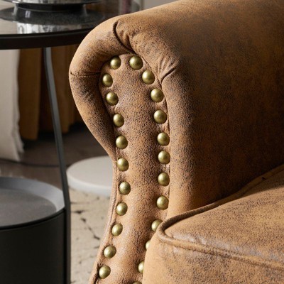 81" Leather Sofa, Mid Century Modern Deep Seat Couch, Upholstered Cushion&Removable Cover, Brown PU Couch, 3 Seat Sofa for Living Room, Office, Brown