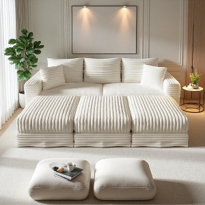 82.7" Plush Corduroy Convertible Sectional Sofa with Movable Ottomans