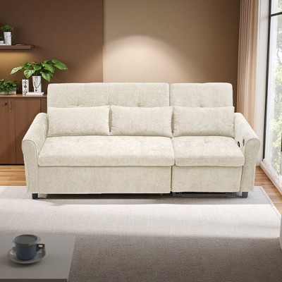 82'' Chenille 2-in-1 Three-Seater Sofa with Pull-Out Bed, Reversible Recliner, and USB Ports