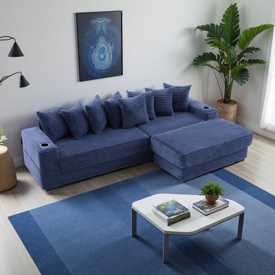 82" Flannelette L-Shaped Modular Sectional Sofas with Deep Seat, Movable Ottoman, Boneless Design, Buckle Connection and Anti-Slip Base