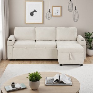 83.5" L-Shaped Sectional Sofa Bed with Storage & USB