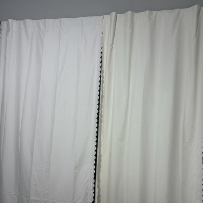 Help limit unwanted light and outside noise in your child's bedroom with this Scallop Blackout Curtain Panel from Pillowfort™. This blackout curtain panel brings decorative and functional style to their space. It's detailed with scalloped accents on the edges for a playful and pretty pop of texture. The lined construction helps block sunlight from entering the room, helping provide your child a more peaceful sleeping environment. Plus, it also adds privacy to the window and helps in noise reduction. The classic rod pocket design along with a button back tab allows for easy and secure installation. Just fit in a standard rod to complete their window decor.