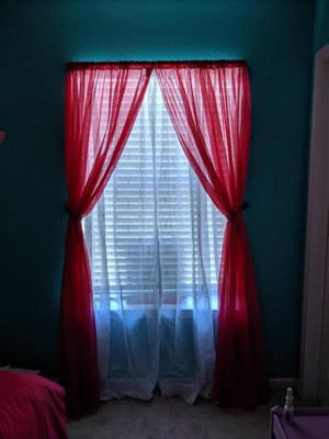 [This review was collected as part of a promotion.] The Tamaryn 50x84 White curtain panels are perfect in my daughter's pink room! I have these on her window which has horizontal blinds on it and these were a great addition. They give the room a much nicer look than just the blinds by them self. I love the sheer look of them as im just using them for the look, not to block out the sun. These have a simple print on them which is nice. I reccomend these to anyone looking for simple sheer curtains.