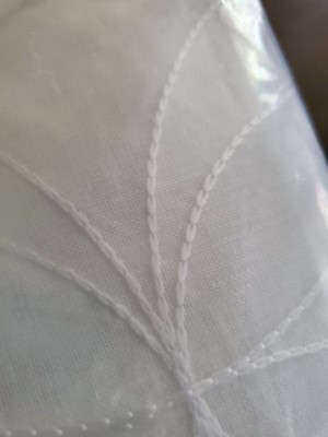 Nice sheers in the ivory color - the embroidered design adds an attractive simple touch to these basic sheers. Shipping to my home was easy and they came quickly. The only negative might be the material as it can snag quite easily. Was going to iron them before hanging and apparently the iron was too warm and they did snag a bit. Glad was in a small spot that is not too obvious. Also can see where they can catch if there are any rough spots on your curtain rods and cause a snag. Other than that was a good purchase