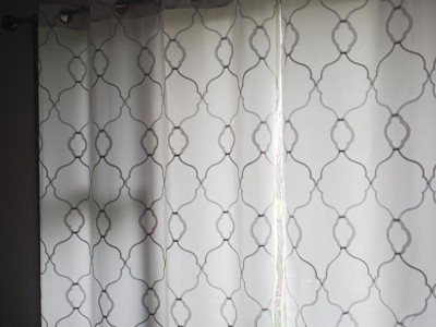 These curtains are perfect. Not see thru, but also let’s light in while keeping your privacy. Matches gray paint perfectly. Grommet top allows easy opening and closing.