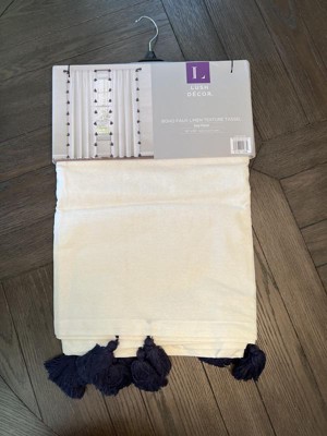 [This review was collected as part of a promotion.] I love this curtain panel. It’s very long and wide, and gives just enough light through to not darken rooms, but gives plenty of privacy. The main panel is a good linen texture in a creamy color and the tassels are a tan/taupe color. The stitching and the weight of the fabric seem to be very good quality.