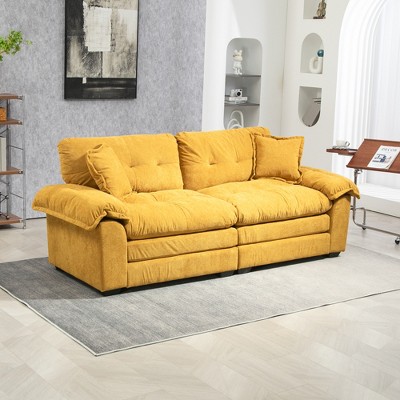 84'' Corduroy Deep Seat Loveseat Sofa with Pillows