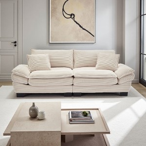 84" Corduroy Deep-Seat Loveseat Sofa with Pillows