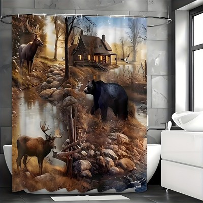84 Inch Green Misty Forest Shower Curtain, Waterproof, Weighted, with Hooks 72x84 Inches