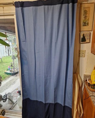 [This review was collected as part of a promotion.] This curtain is thick and great quality. It is two shades of blue and the darker blue is navy. Perfect for baby room or boys room! I like that it has the two colors in it and that it seems like it will keep light out. I definitely recommend. Target is the best! I wish I had a use for this item because I worked definitely use it. I don't have any other feedback for the curtain.