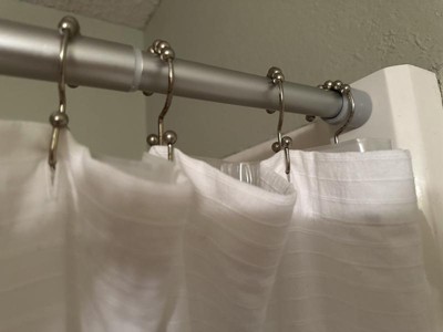 submitted byMaytex - 6 years agoBrand expertA: Hi Mike - Thanks for asking about this sleek shower curtain rod! This rod adjusts between 52 and 86 inches to perfectly fit your space. We appreciate you stopping by! - Julie