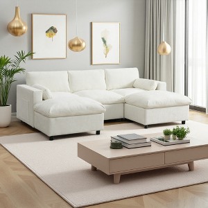 86.5" Chenille U-Shaped Modular Sectional Sofa with Storage & Ottomans