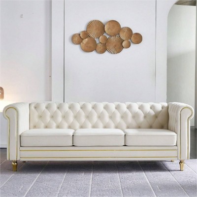 87"Modern Long Sofa,Velvet Couch,Button Tufted Chesterfield Sofa with Scroll Arms,Luxury Comfy Loveseat Sofa,Living Room Sofa-Koiai