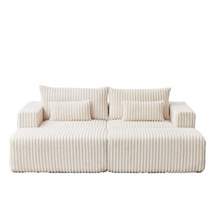 Experience ultimate relaxation with the 87" oversized sectional lounge chaise, a plush loveseat that requires no assembly. This cloud-like sofa comes with two removable footstools for customized comfort. Ideal for indoor living rooms and bedrooms, the fluffy modern sleeper chair provides a soft and inviting space for lounging and overnight guests, all without the hassle of setup.
