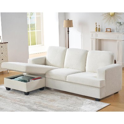 89 Inch Sofa, Oversized 3 Seat Sofa, Chenille Fabric Upholstered Sofa with Wide Armrest and Removable Cushion, for Living Room, Bedroom, Beige